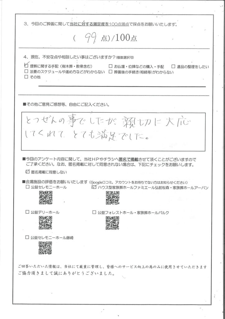 とつぜんの事でしたが、親切に対応してくれてとても満足でした。